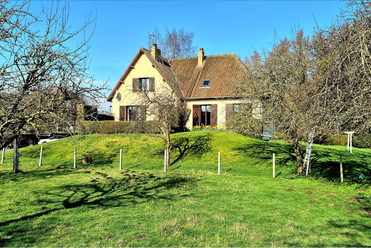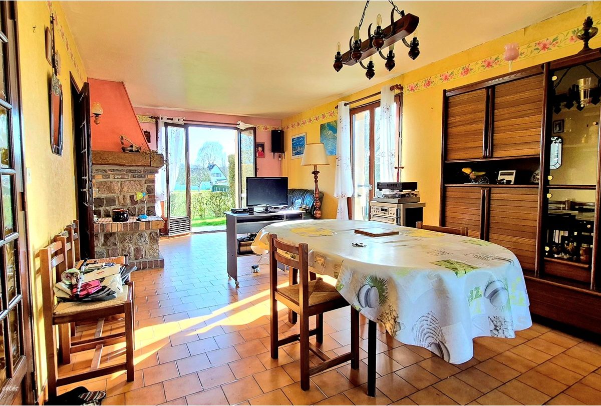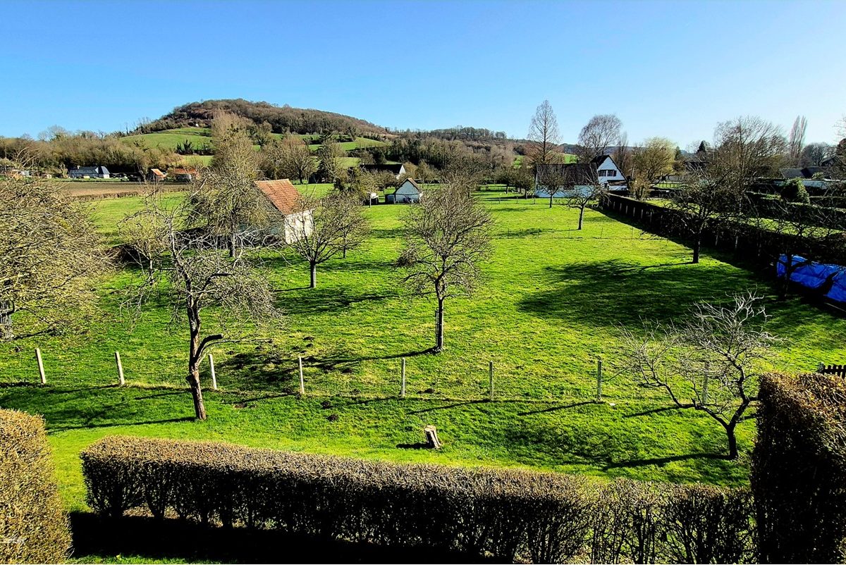 Parfaitement nichée au calme dans un cadre naturel et verdoyant , venez découvrir cette maison traditionnelle sur sous-sol complet, édifiée sur une parcelle de près de 5000m² et offrant de belles vues dégagées sur les étangs et sur la vallée de la Béthune.  Ce bien, en bon état structurel général mais nécessitant certains travaux de rafraîchissement et d’agencement intérieur, offre de confortables volumes avec près de 145m² habitables sur deux niveaux. La maison est habitable de plain-pied et comprend une entrée avec rangements intégrés, un bel espace de vie traversant avec une cheminée à l’âtre et de belles vues dégagées sur les plans d’eau et la vallée, une cuisine aménagée, 3 chambres dont 2 avec rangements intégrés, une salle de bains , un wc séparé. A l’étage: un palier dessert 2 belles chambres avec rangements, une salle d’eau avec wc et un grand grenier aménageable. Sous-sol complet à usage de garage, buanderie, chaufferie et cave. La maison bénéficie d’un classement énergétique particulièrement favorable avec son système de chauffage par pompe à chaleur eau/eau. La production d’eau chaude est assurée par un chauffe-eau électrique.  En extérieur: vous bénéficierez d’une belle parcelle de terrain plane de 4965m² avec verger et herbage ainsi qu’une dépendance alimentée en eau. Un grand parking pouvant accueillir plusieurs véhicules complète ce bien idéal pour accueillir famille et amis dans un cadre apaisant à 15mns de DIEPPE.